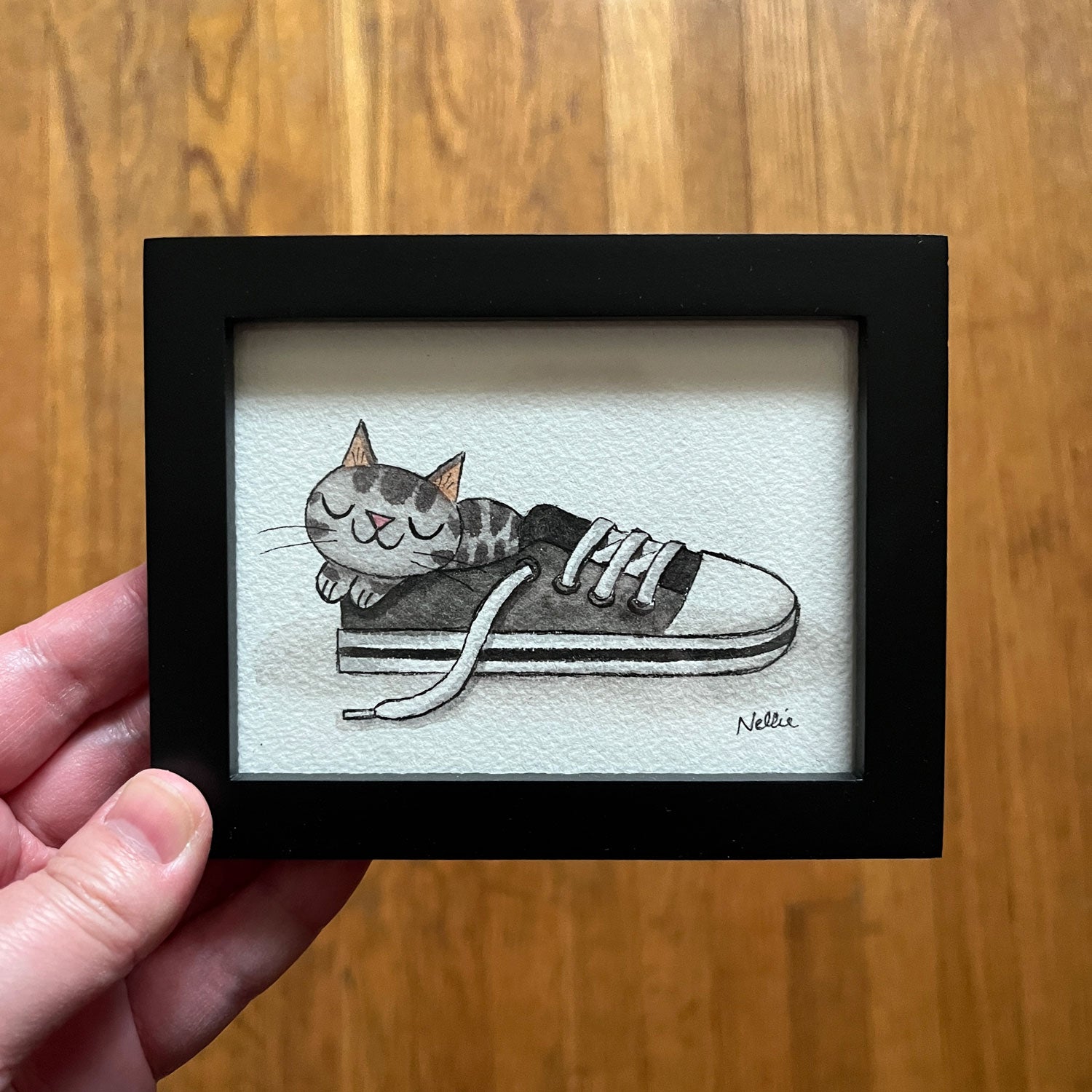 Grey Tabby Sneaker - Framed Mini Painting