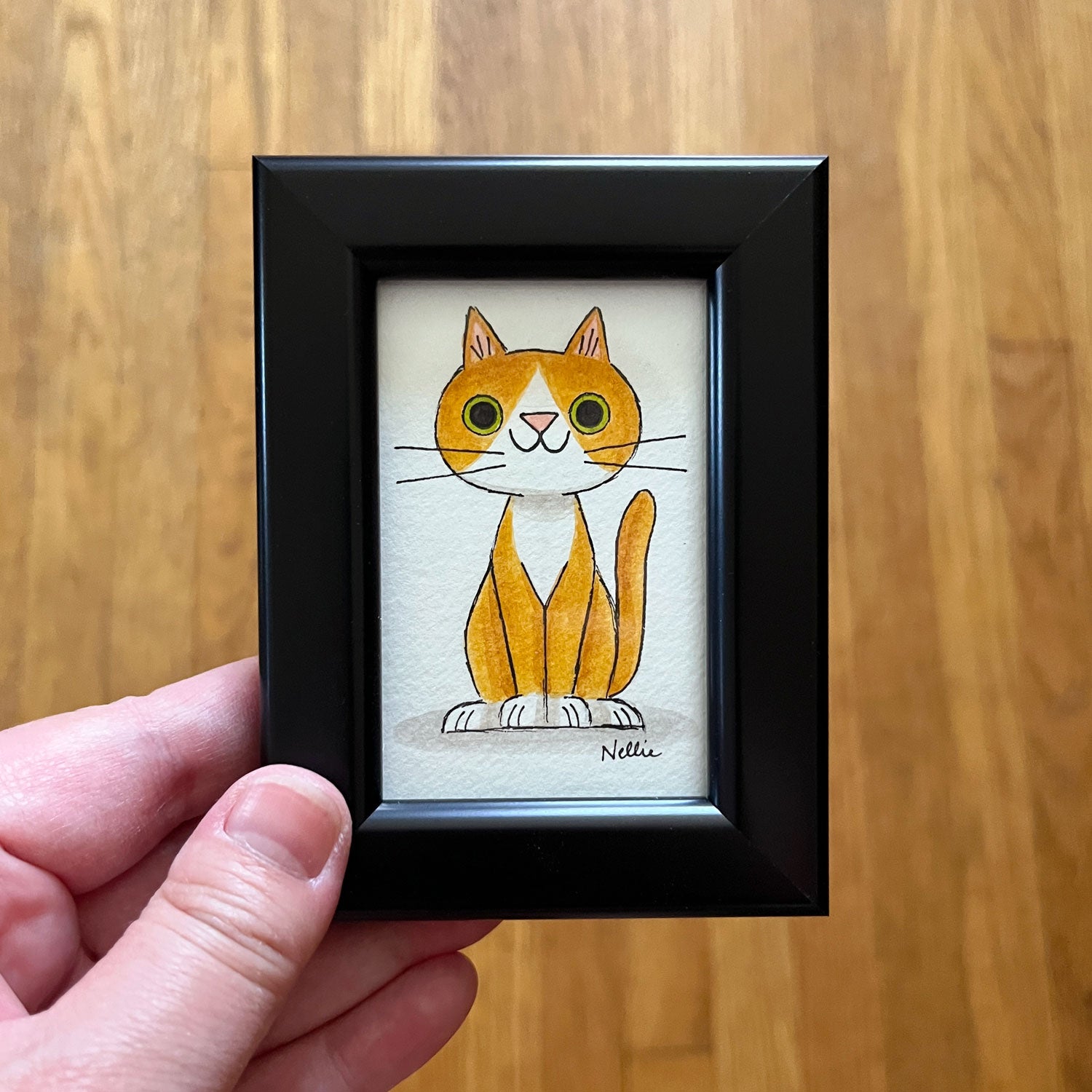 Orange and White Cat - Framed Tiny Painting