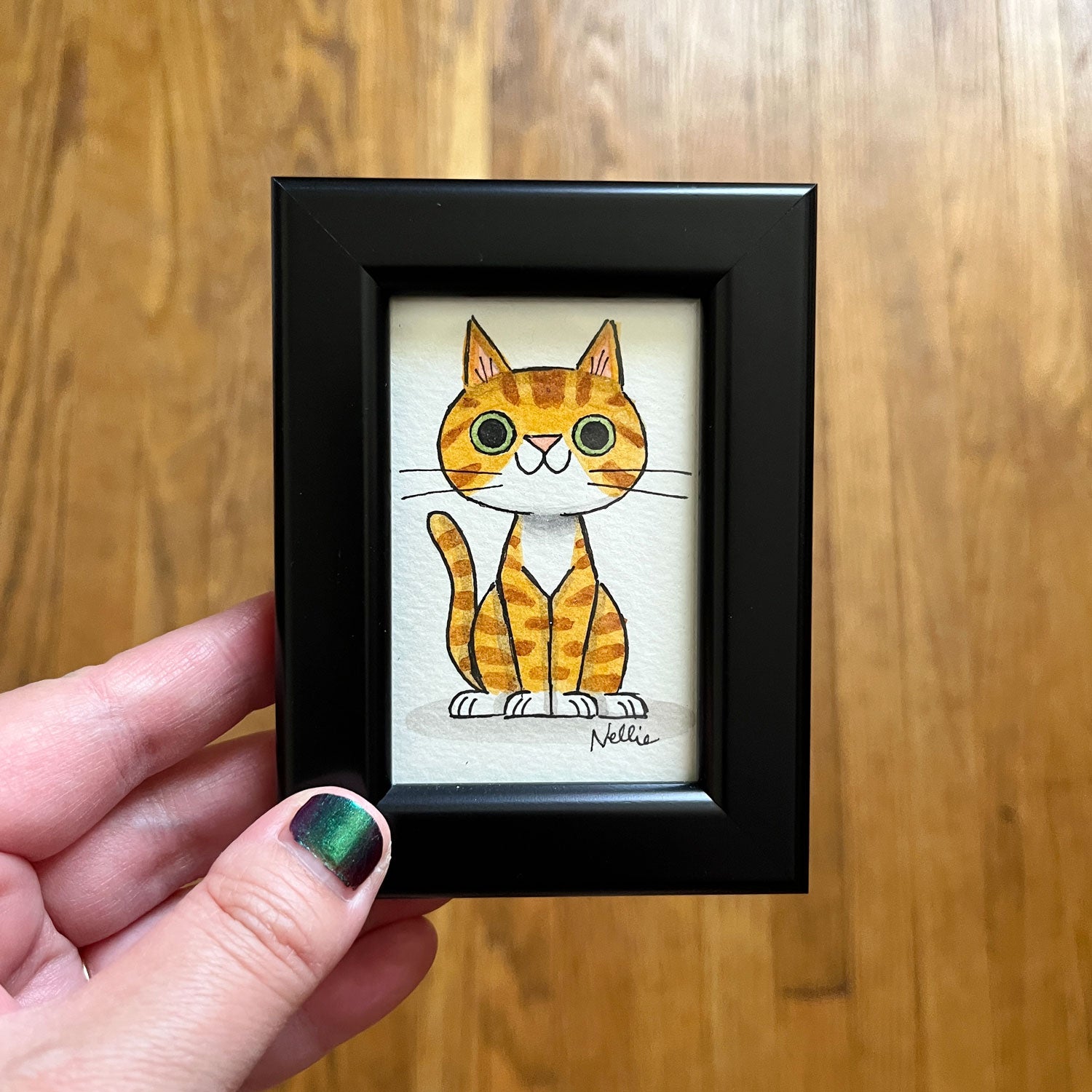 Orange Tabby Cat with White Socks - Framed Tiny Painting